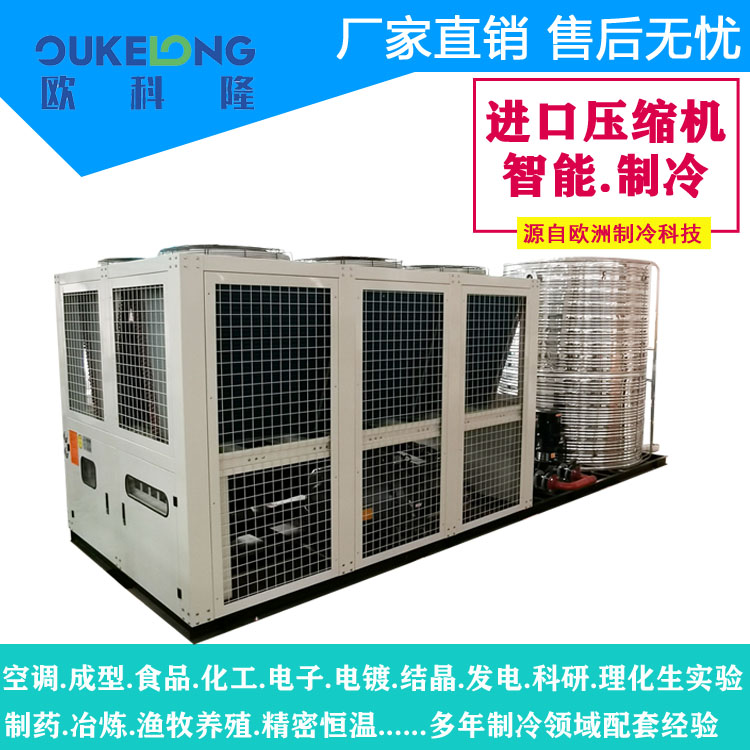 欧科隆100HP风冷螺杆式冷水机采用先进的螺杆压缩技术,专为大型工业制冷需求设计,广泛应用于化工、电子、食品加工等领域,提供高效、可靠的制冷解决方案。
