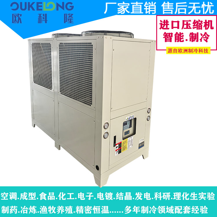 欧科隆25HP风冷式冷水机是一款大功率工业级制冷设备,专为中型制造企业和连续生产场景设计。该机型采用高效风冷散热技术,突破性实现25匹(约75kW)制冷量,无需外接冷却塔,大幅降低安装复杂度与运维成本。