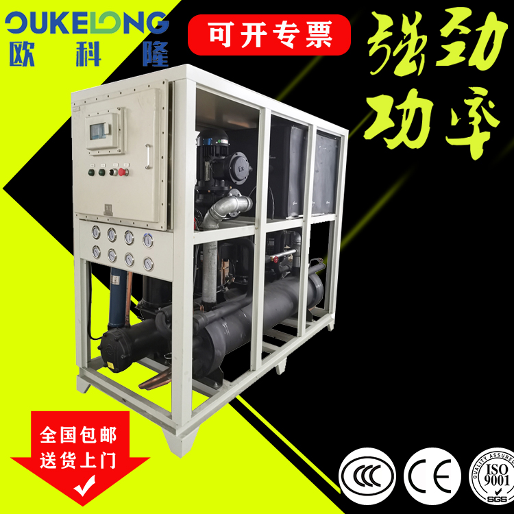 欧科隆水冷箱式防爆冷水机是bat365中文官方网站打开市场的拳头产品,采用隔爆、增安、本安、正压、充油、充砂、无火花、浇封和气密等多种防爆方式,使机组可以在易燃易爆场合使用。