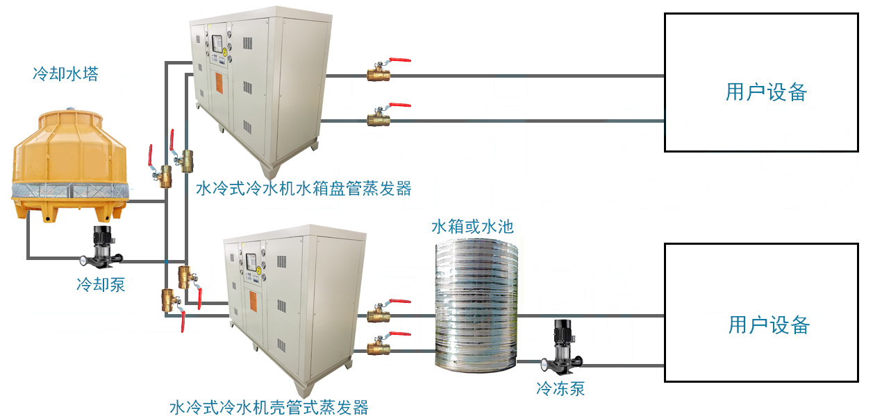 1.欧科隆水冷箱式冷水机系统方案简易图: